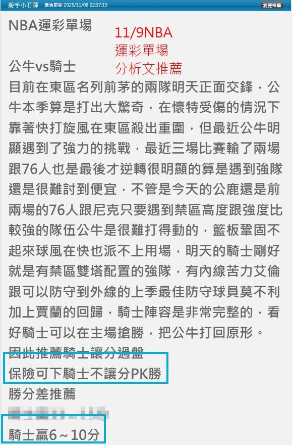 NBA >> 11/10NBA國際近4日18過14 國際主推4連勝 今小叮嚀分析文推薦單場:騎士PK+贏6分都過