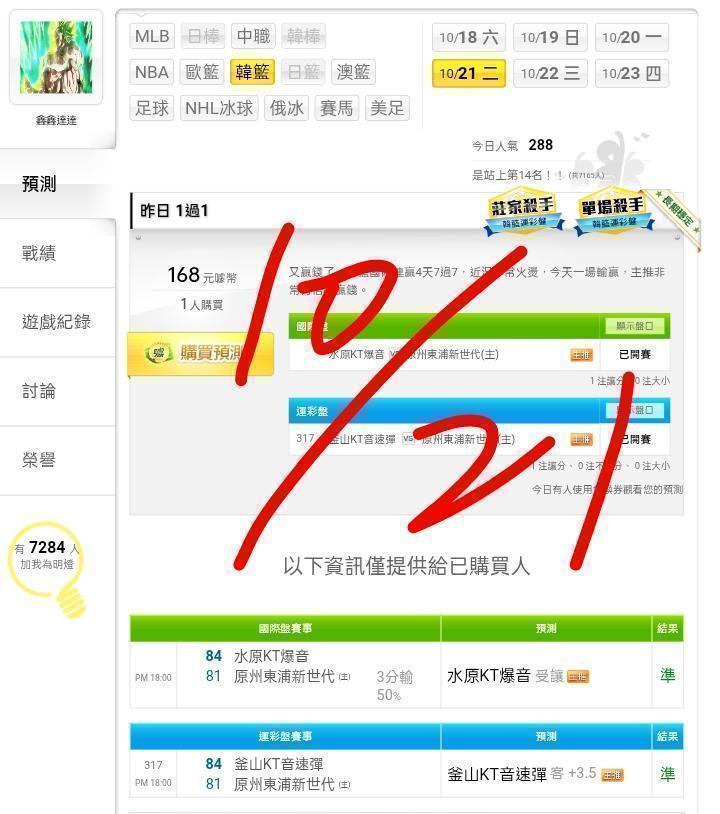 韓國職籃 >> ⭐⭐一場輸贏,信心主推99%貓場,主推非常有信心,一次綠回來。