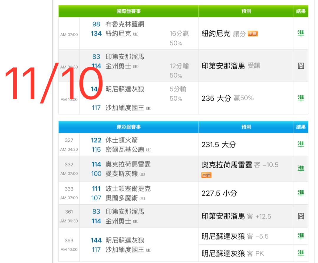 NBA >> 🏀11/11 NBA「連七天命中勝分差」《今勝分差7過4;雙盤9過7》26+命中2場🎯千倍高賠✅