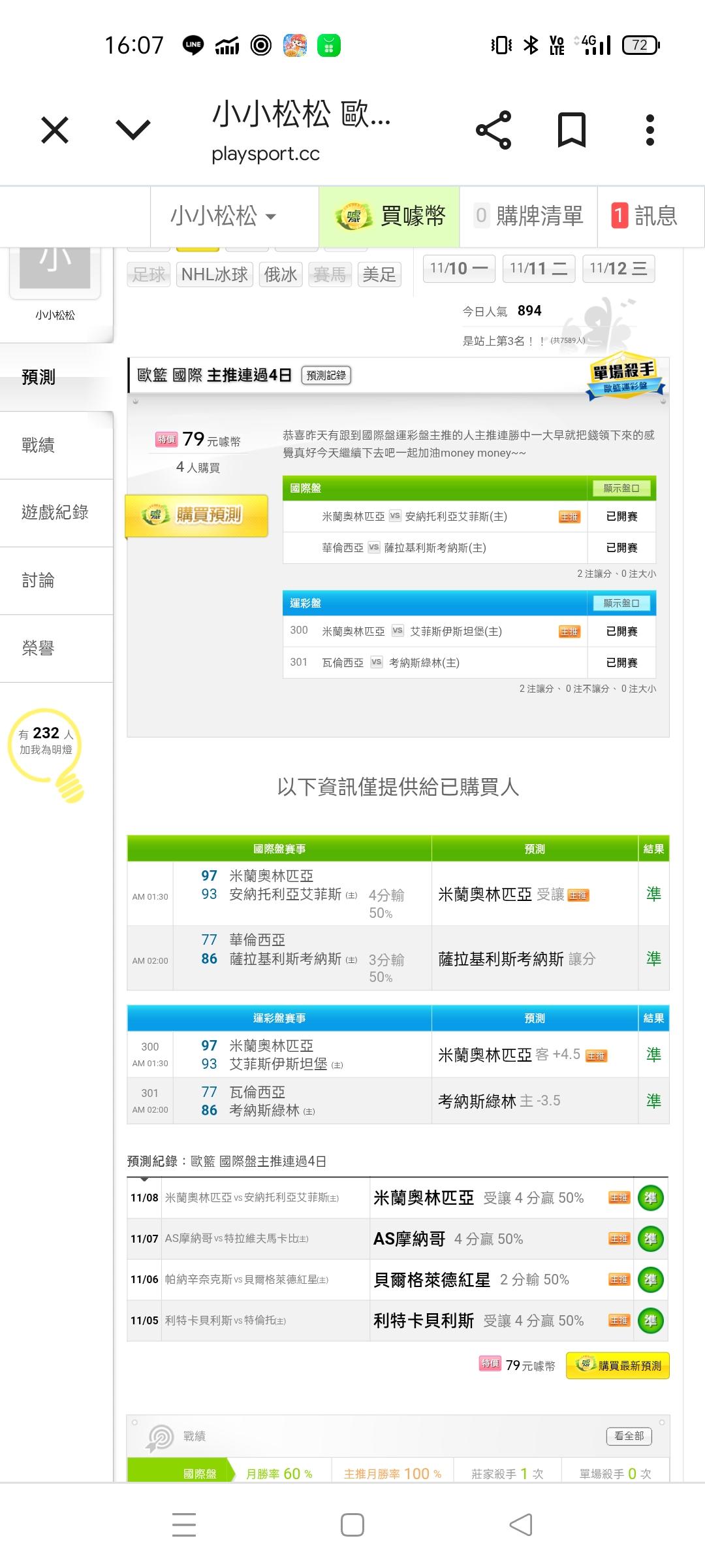 歐洲職籃 >> 這個月國際盤主推勝率100%不敗之身特價給你們參考好好把握這次的機會原始盤也歡迎大家可以討論👍👍👍