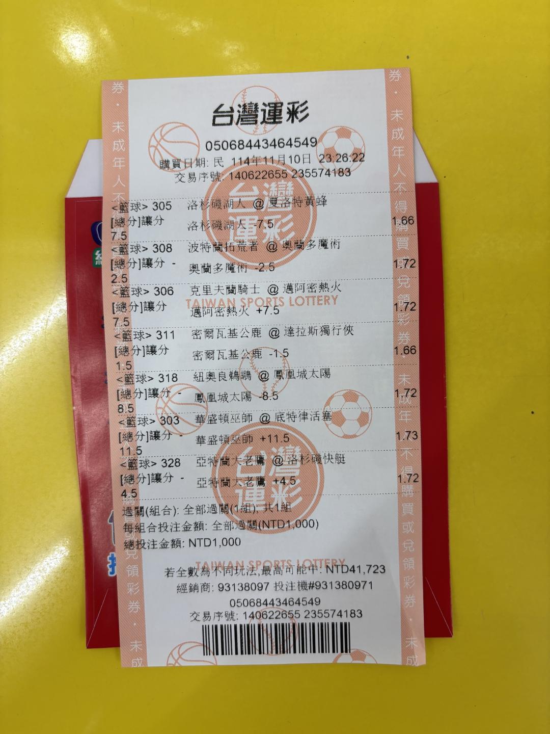 左邊這張是今天贏的,去運彩行換錢老闆說我超厲害我都不好意思了,然後重點剛好他現金有4萬1,不知道是不是就是為我準備的。