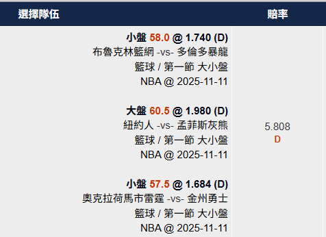 >> 11/ 12 NBA 🏀國際讓分近5日 6過5 免費分享第一節