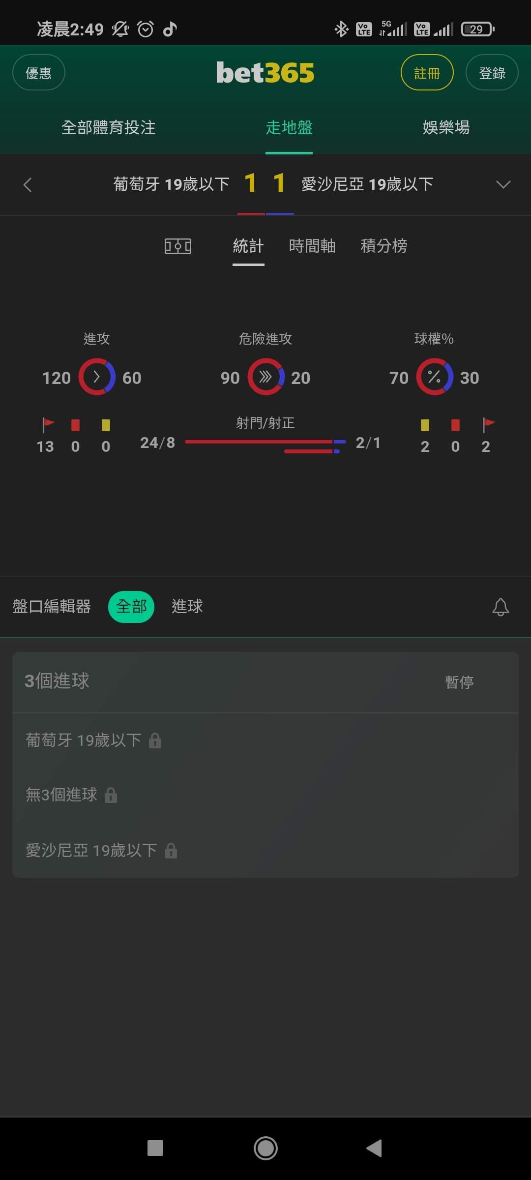 葡萄牙u19 3.5大 小貓 遲遲沒球的話3內大 大貓