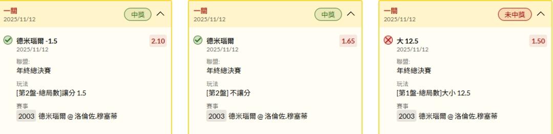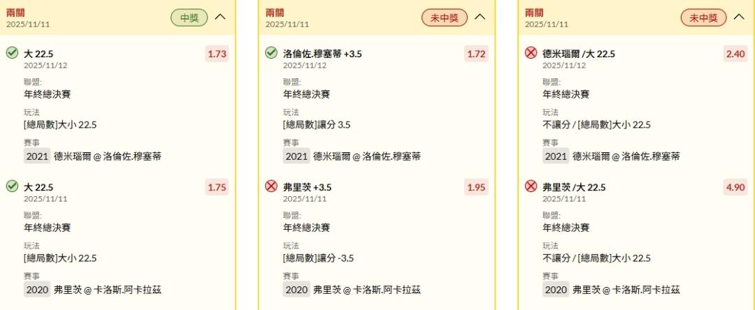 來自我復盤一下從11/10(第二天)~11/12(第四天)、跨13號第一場第五天剛結束~有串有場中除了11凌晨維修(辛那v.s阿里)沒開盤沒玩到其他都有玩、10號(阿茲v.s.謝爾)那場跟9號只玩串沒下單場(前面有發文)、彩幣也有加減玩一下~