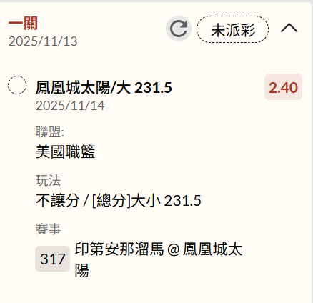 >> 11/14 NBA 運彩單場 IND vs PHO