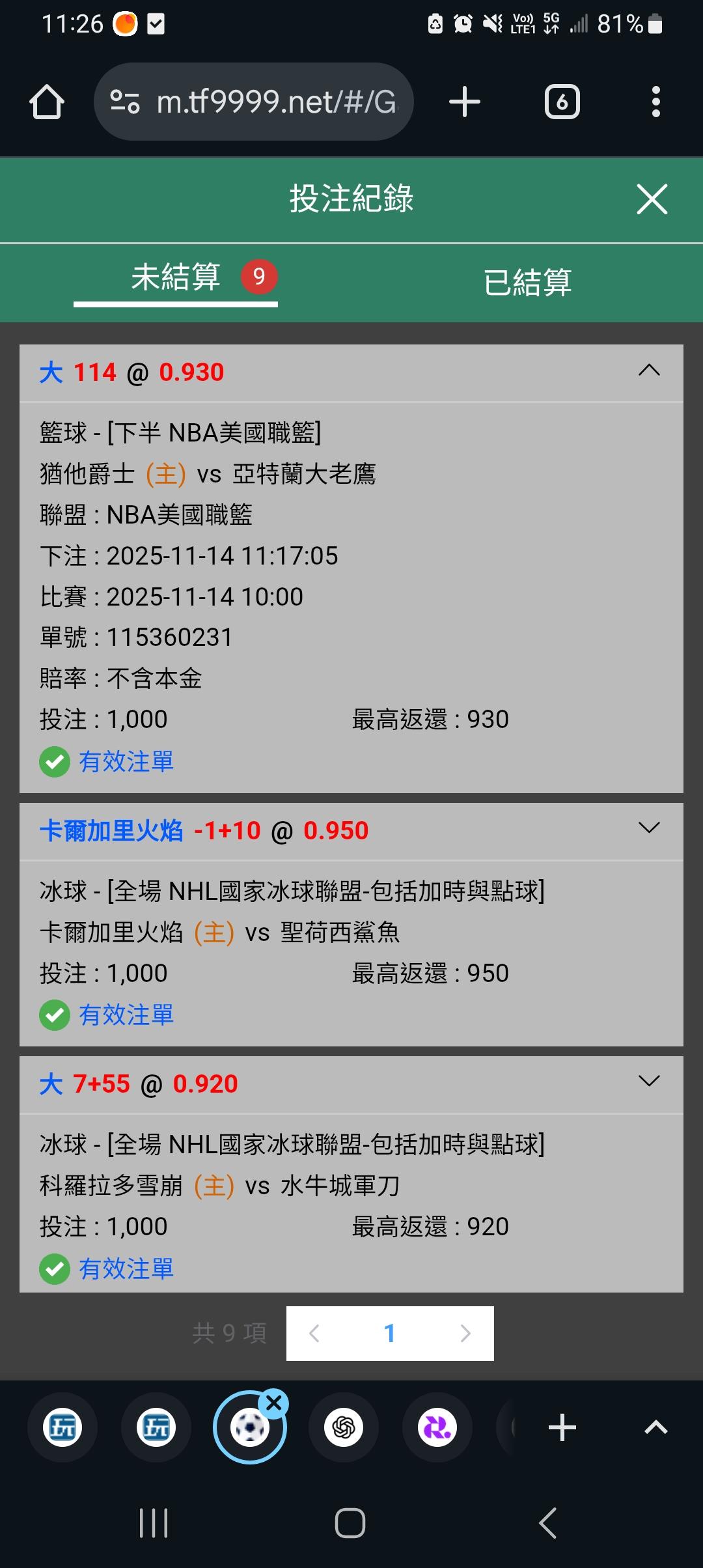 | 運彩盤賽事 |