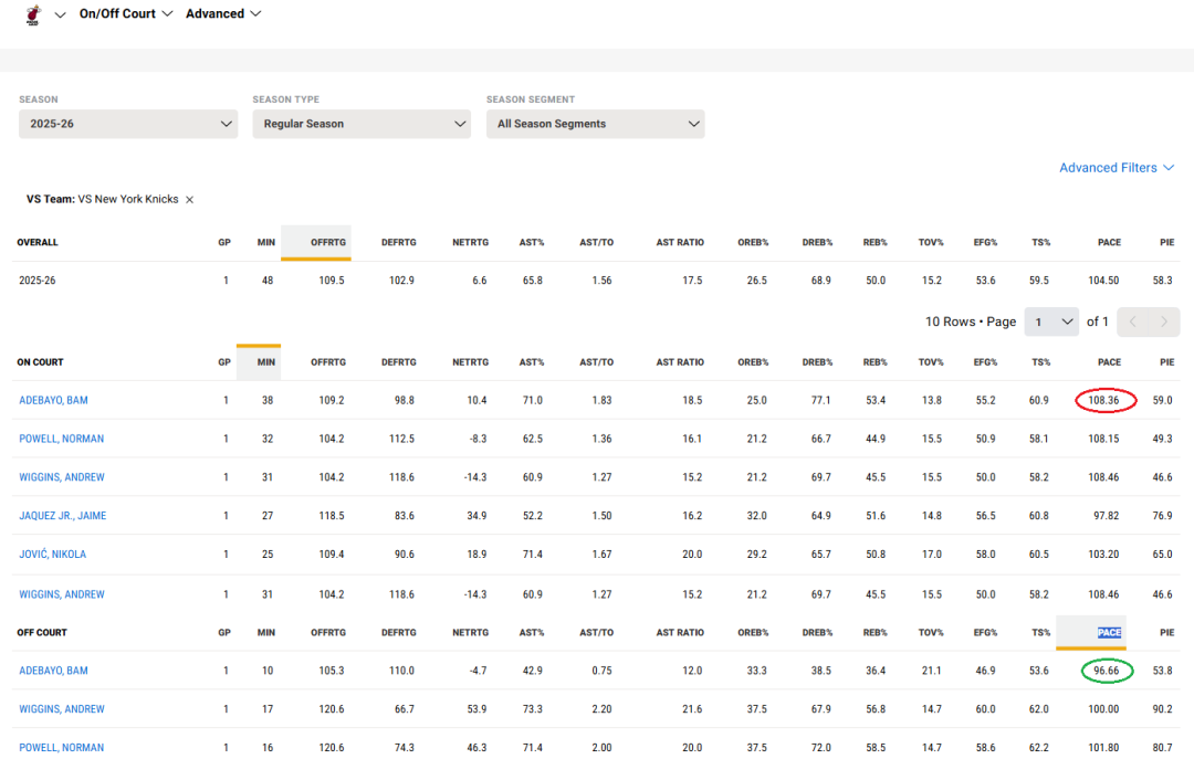 進攻效率 105.3 防守效率 110.0 節奏 96.66