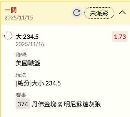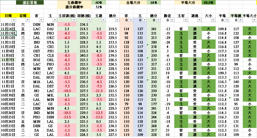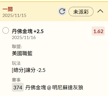 >> 11/16 NBA 運彩單場 DEN vs MIN