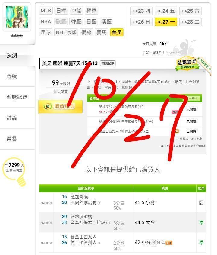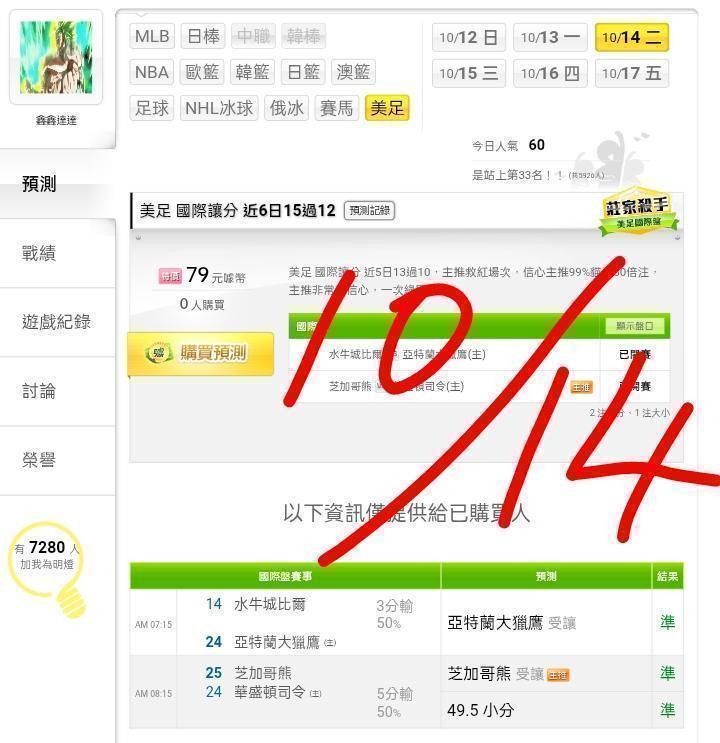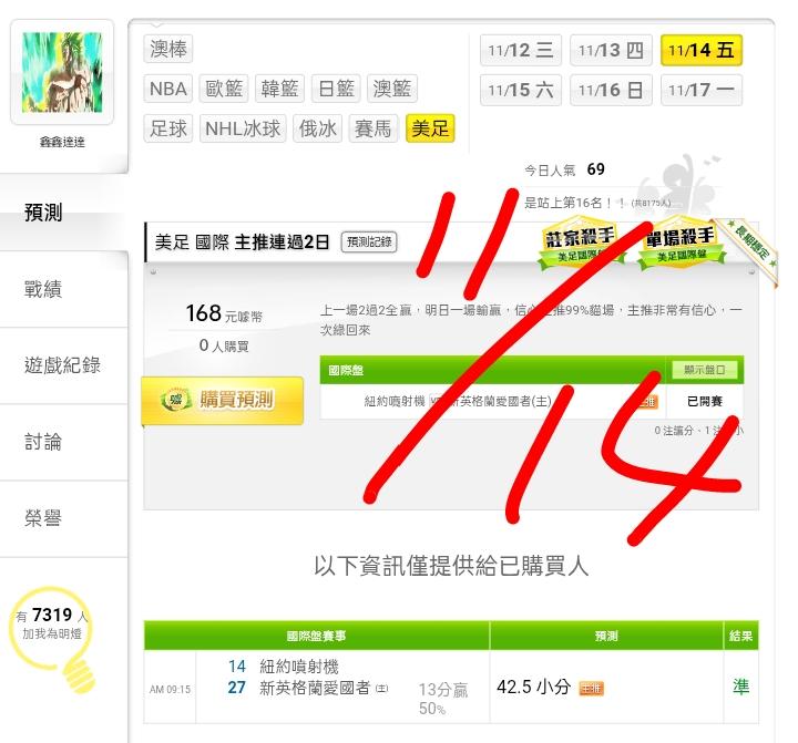 美式足球 >> ⭐⭐主推連過2天,連贏2天3過3,今晚一場決勝,歡迎參考。⭐⭐