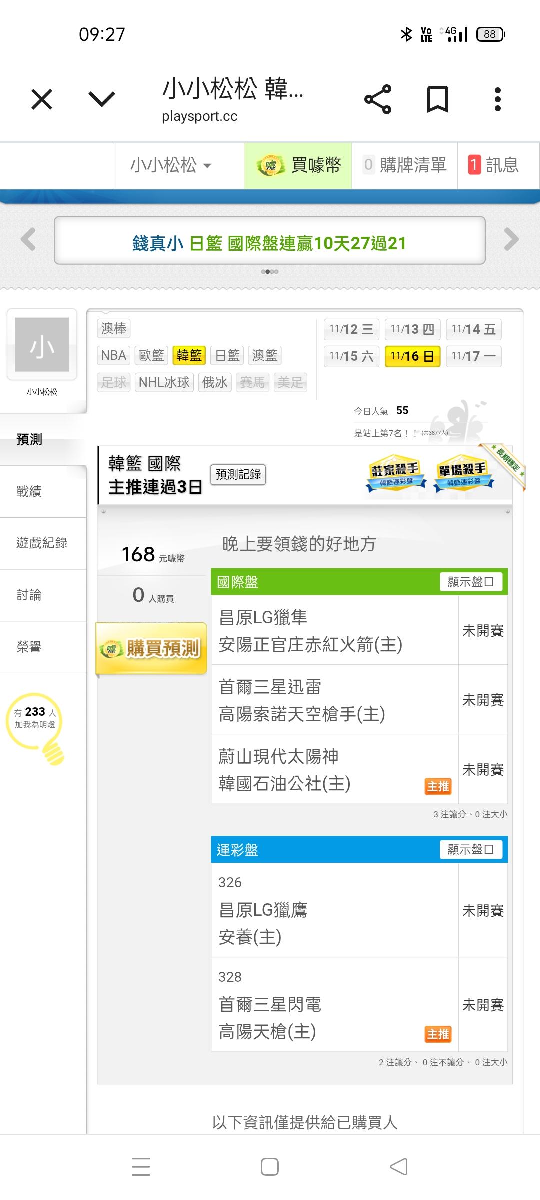 韓國職籃 >> 國際盤主推連勝中相當看好3點的比賽因為快要開賽了最後宣導好好把握最後的機會待會就準備去領錢了