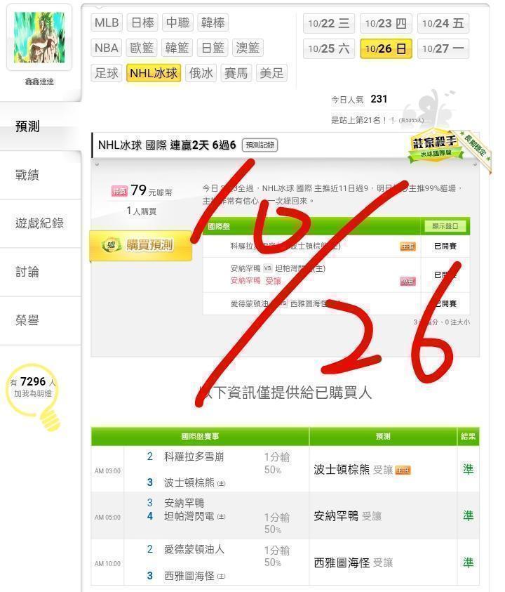 NHL冰球 >> ⭐⭐今日3過2,明日主推台彩單場-紅翼vs遊騎兵,信心主推99%貓場,主推非常有信心。
