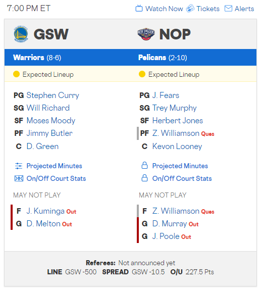 鵜鶘的Zion Williamson明天可能會歸隊,但他本季的數據表現並不起眼,對戰局估計也沒太大影響。雖然使用率很高,但左撇子的他真實命中率很低,優異的是他製造犯規的能力。而他的罰球命中率本季也才66.7%,場均11.4顆罰球,但才命中7.6個。本季至今甚至還沒有三分線出手的紀錄,這在當今NBA是相當不可思議的表現。等於他都得在禁區拿球發動,但他的失誤率又高,空間又拉不開,阿反正他也不一定會打啦!