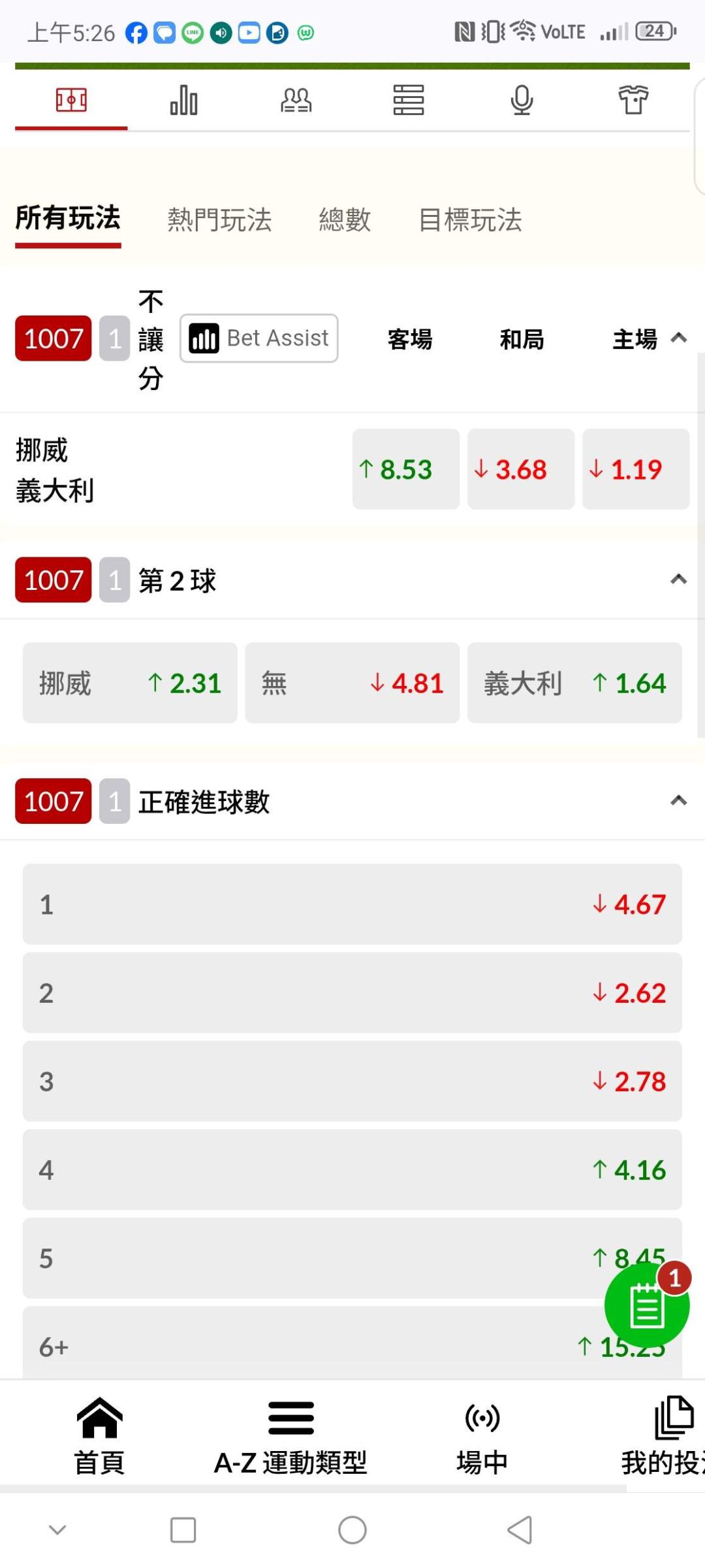 足球 >> 挪威 大戰 義大利