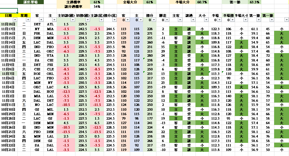 NBA >> 11/19 NBA 運彩單場 DET vs ATL