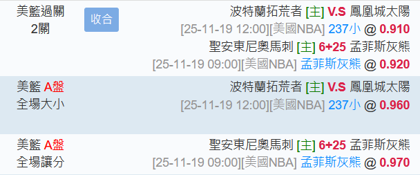NBA >> 11/19【免費推薦連過6天】初盤分享+灰熊受讓版路+2X1推薦!