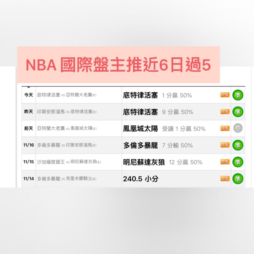 NBA >> 🏀🌟11/20 NBA 國際 主推近6日過5《火箭vs騎士》