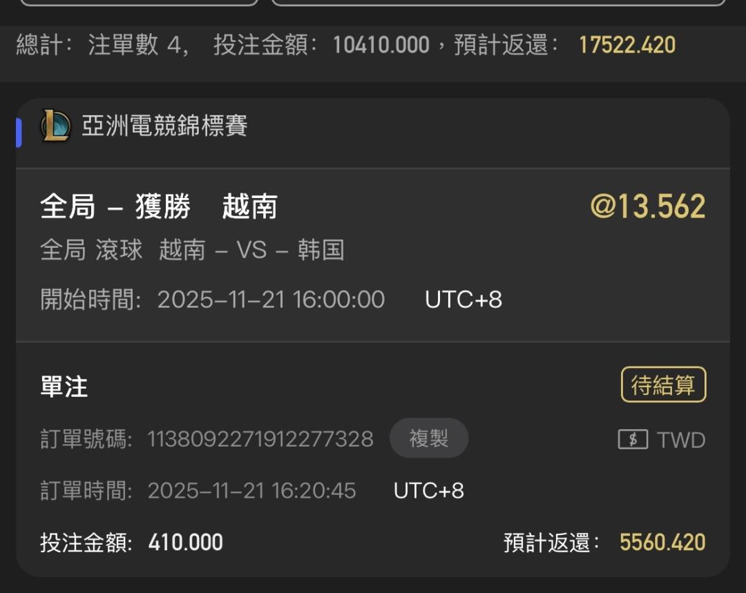 電競 >> 亞洲錦標賽(台灣運彩朋友可跳過)
