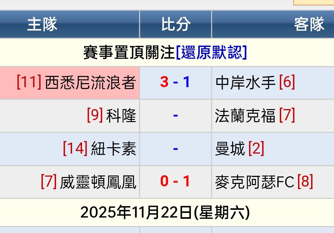 足球 >> 中岸水手 大戰 西雪梨