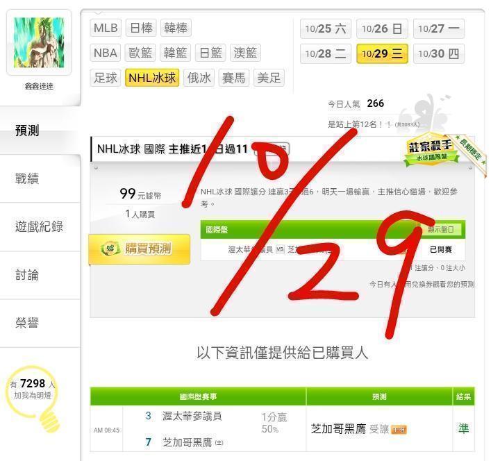 NHL冰球 >> ⭐⭐明日主推台彩單場08:00閃電vs首都,主推非常有信心,信心主推99%貓場,一次綠回來