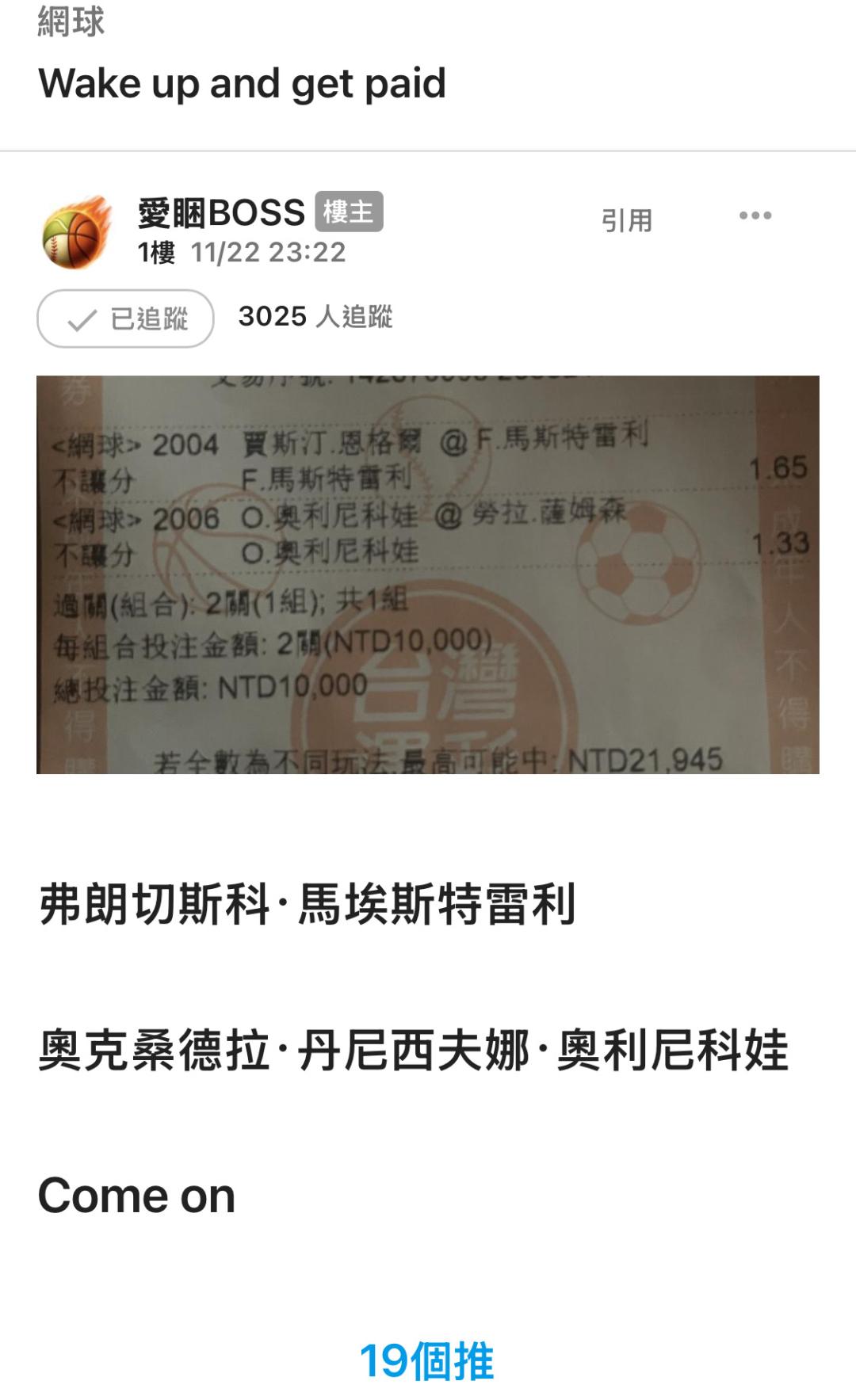 網球 >> 11/23 Wake up and get paid