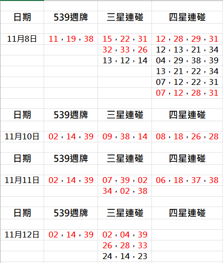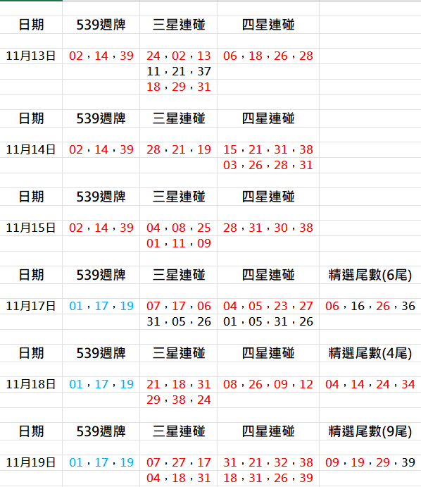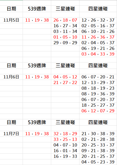 彩球 >> 今彩539★版路分析★11月19期最高抓取4星,平均1-2星區間!