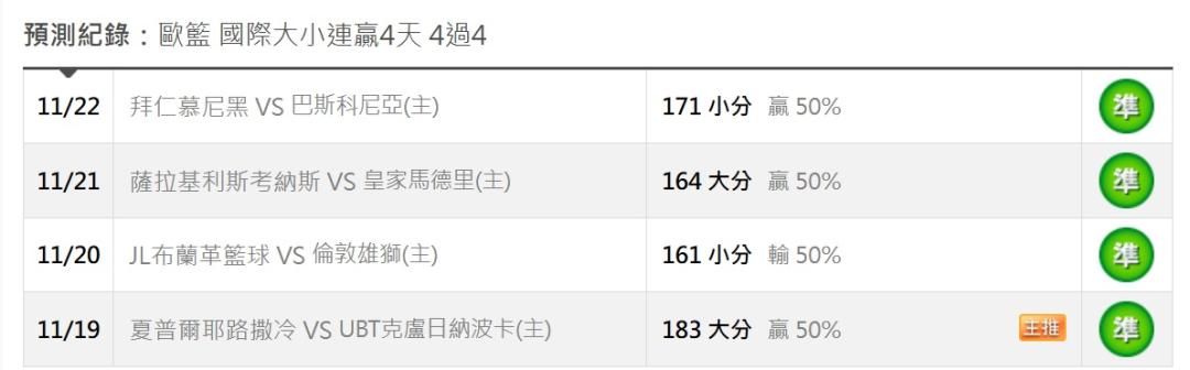 歐洲職籃 >> 歐籃分享1場(上週六雙主推過,國際大小 連贏4天4過4)