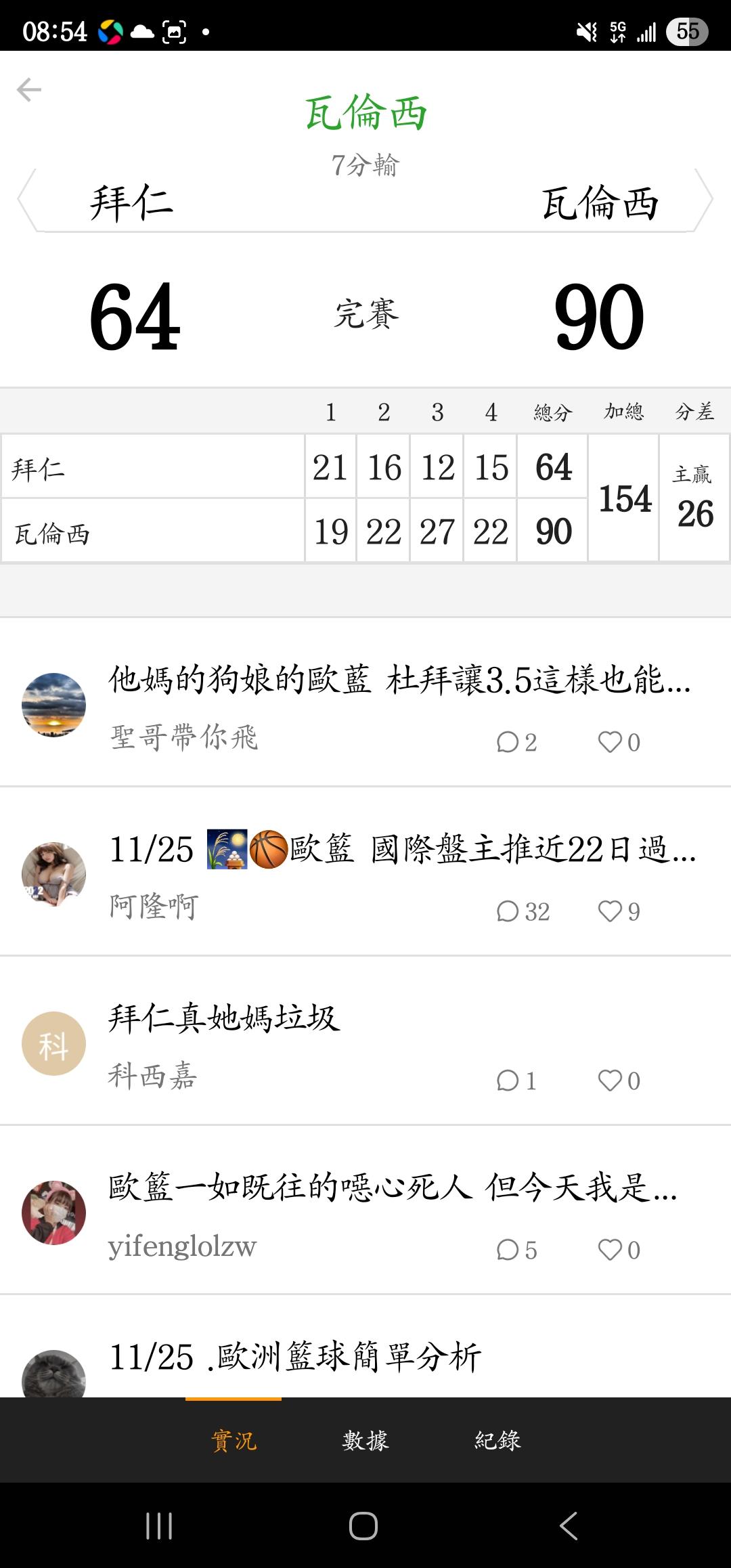 瓦倫西亞對拜仁 最終比分不對,麻煩修正。直播最終也是90-64