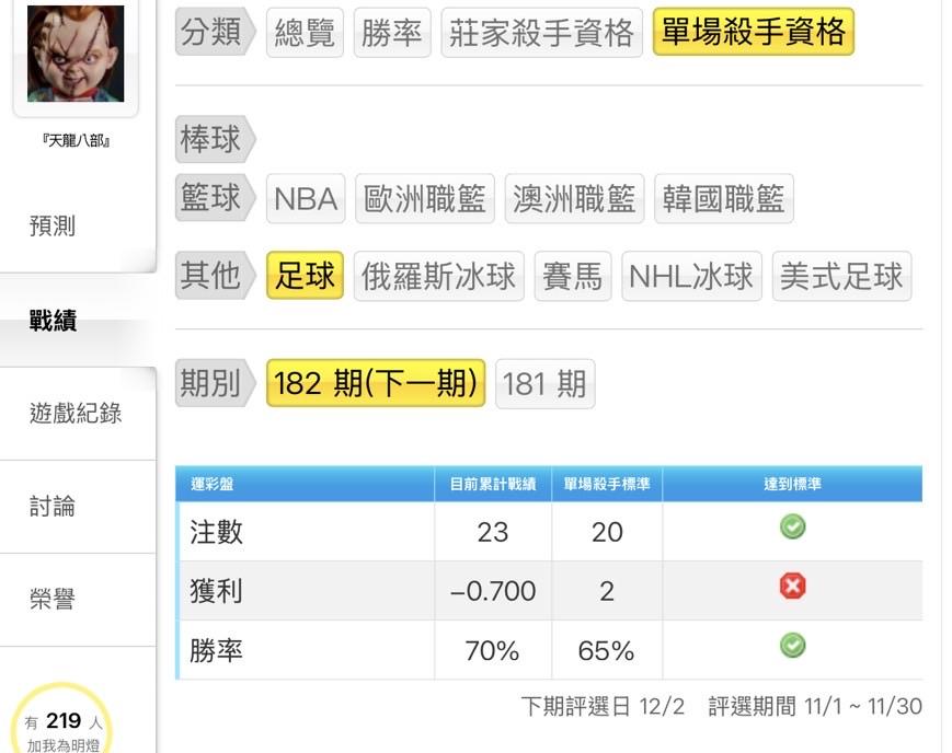 足球 >> (歐霸盃)力保(單殺第二名)19W2L
