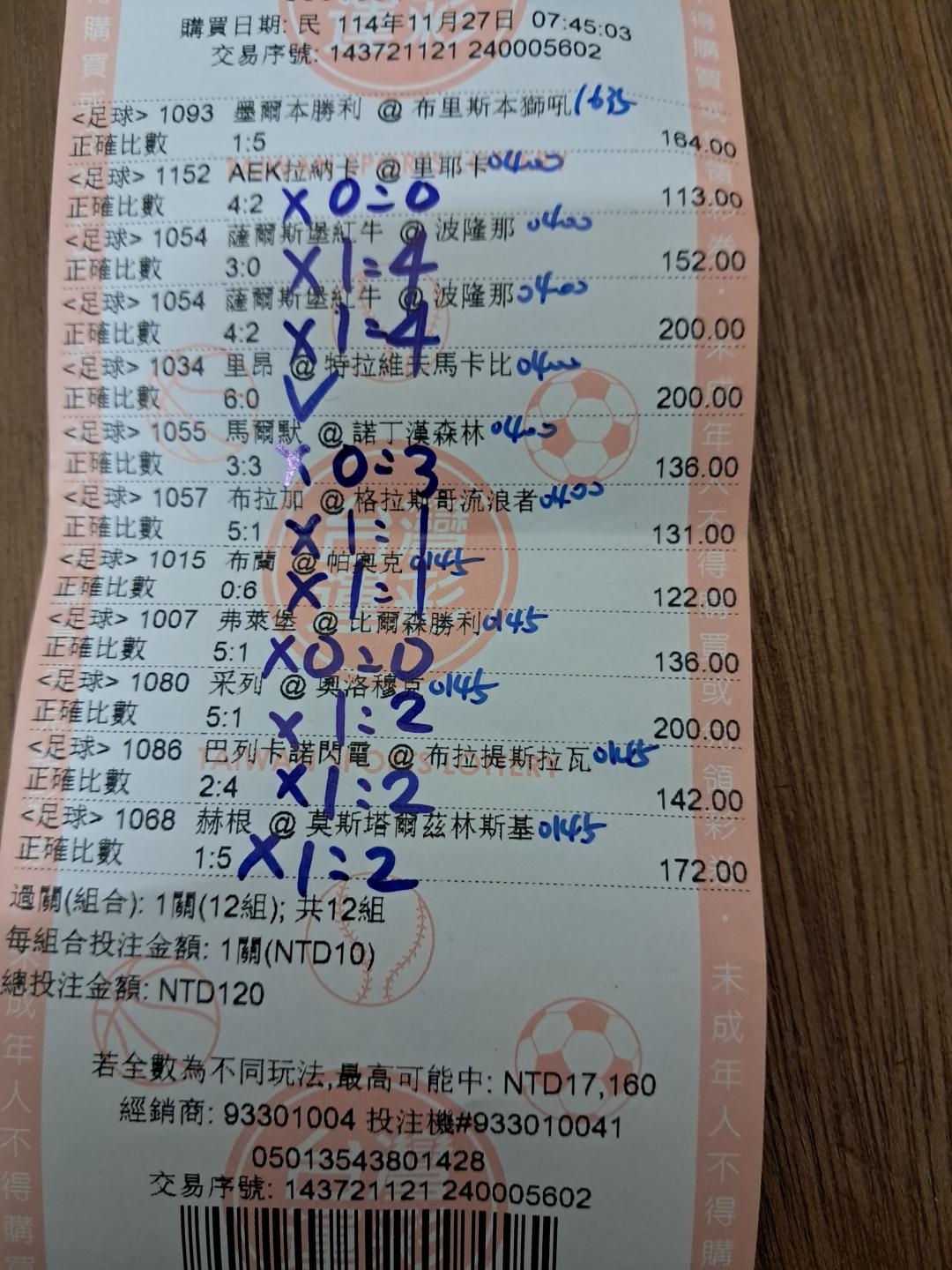 過關炫耀 >> 麻煩工友大大,歐霸盃里昂@特拉維夫馬卡比6:0 200倍,請幫忙收錄,謝謝。