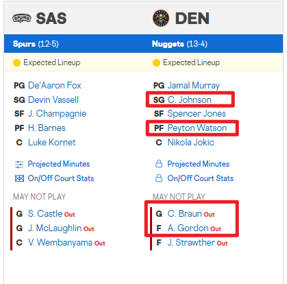 NBA >> 11/29 NBA 馬刺vs金塊,推薦馬刺 +8.5(內涵完整分析)