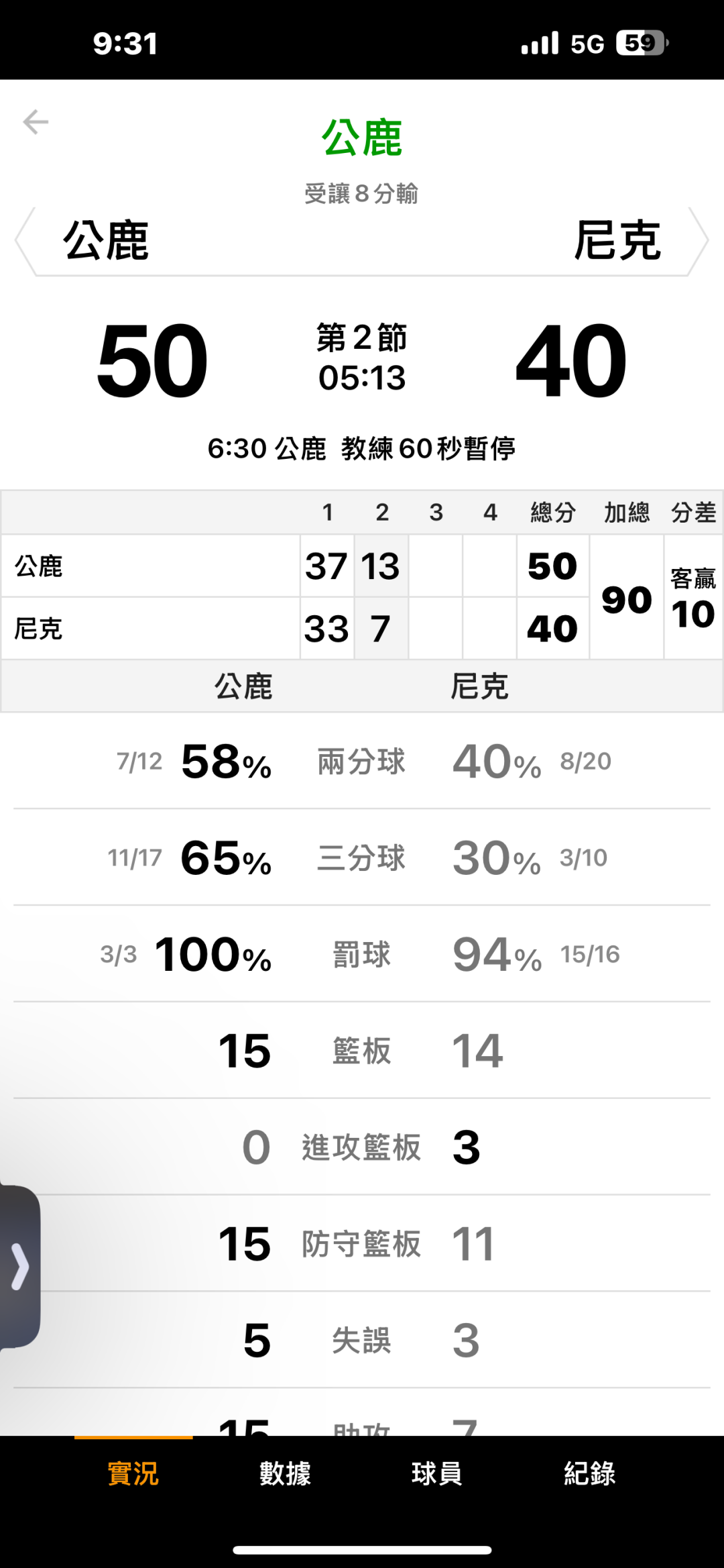 >> 公鹿:尼克 上半場小分