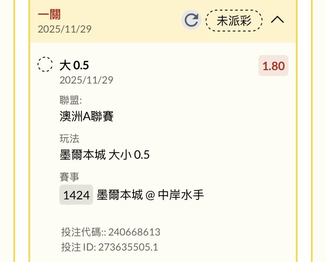 足球 >> 11/29 澳超 海岸水手 VS 墨爾本城 這場走地