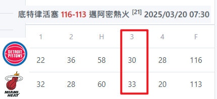 NBA >> 11/30 NBA 熱火vs活塞,推薦熱火第三節獨贏(內涵完整分析)