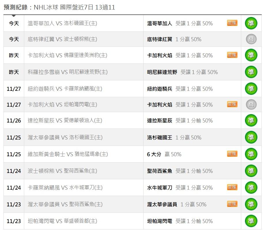 NHL冰球 >> [近期 13過11]-[台彩單場 星辰VS參議員]+[颶風VS火焰]-有信心 拚全過