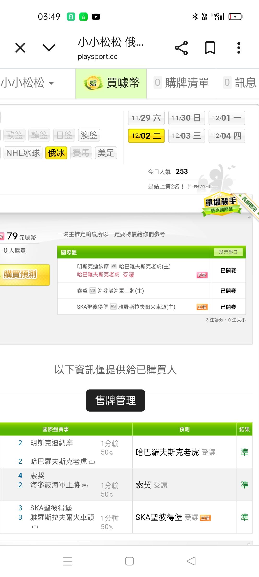 俄羅斯冰球 >> 不怕死的快進來看免費的 也請問大家有場中嗎還是有單場的