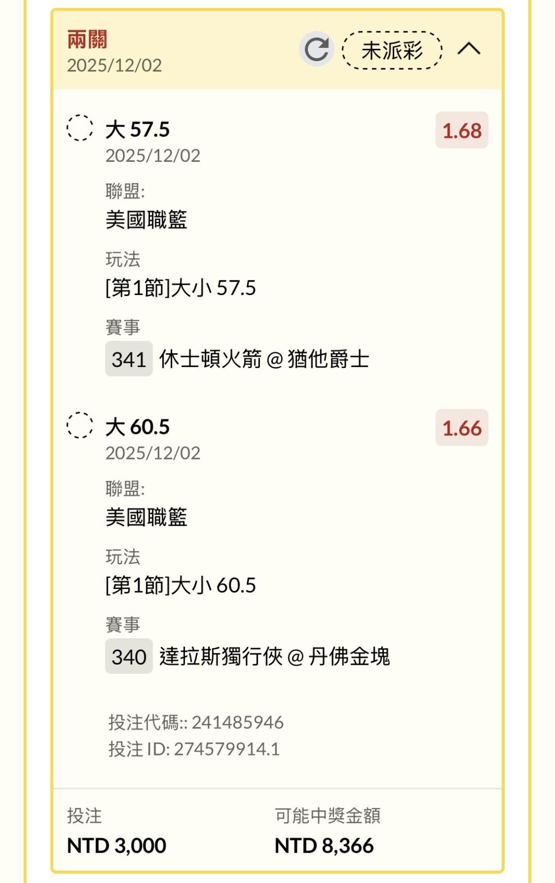 >> 難得收一張串關,五張才過一張….