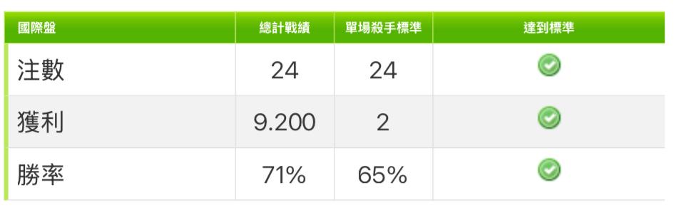 國際盤連贏4天15過14