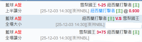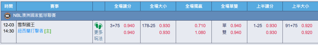 澳洲職籃 >> 12/03【國際主推近17日過12】【國際大小近7日8過7】【小叮嚀2X1連過2天】上半推薦!!