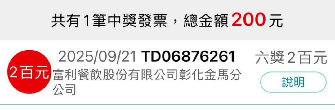 閒聊 >> 哈哈這個月發票又中200元 6號自動匯入悠遊付的帳號