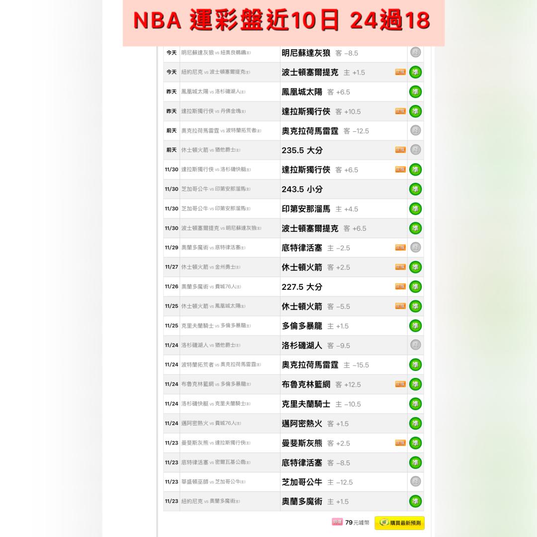 NBA >> 12/4🏀🎑 NBA 運彩盤近10日 24過18《活塞vs公鹿》