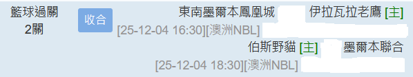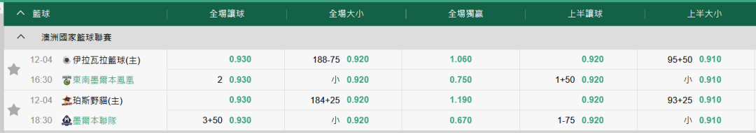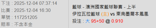 澳洲職籃 >> 12/04【國際主推近18日過13】【雙盤全過5個準】【小叮嚀3注全過】上半推薦!!