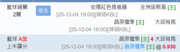 韓國職籃 >> 12/04國際 主推近11日過9【國際主推連過4天】【11月國際主推71%】上半場推薦!!