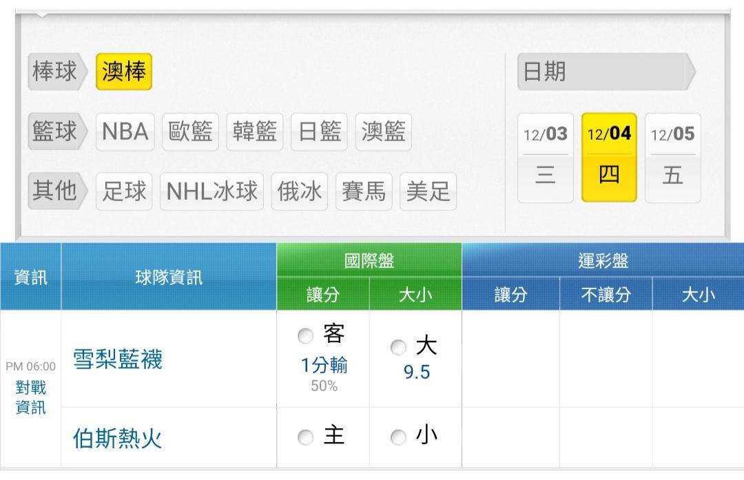 >> 12/4澳棒 一場 晚上六點開打 藍襪@熱火