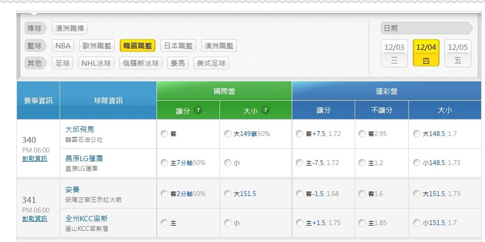 韓國職籃 >> 12/4 韓國職籃 今天有兩場比賽 要一起玩嗎?