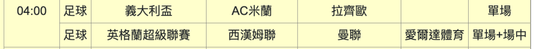 足球 >> ⚽️立馬ㄅㄧㄤˋㄅㄧㄤˋ聲,運彩單場:拉齊歐 VS AC米蘭,曼聯 VS 西漢姆聯