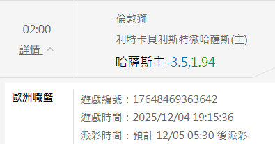 利特卡貝利斯特徹哈薩斯  主 -2.5 免費