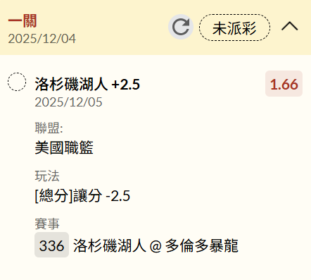 >> 12/5 NBA 運彩單場 LAL vs TOR