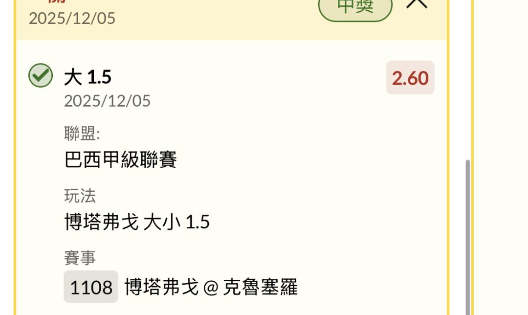 黑哥沒事 我早上看完也買 一起 但是我沒有上到上半場1.5小 下午奧超凹回來 我要歐印下去了 等你報 我下午的馬上歐印 沒過 就這個月不能玩了