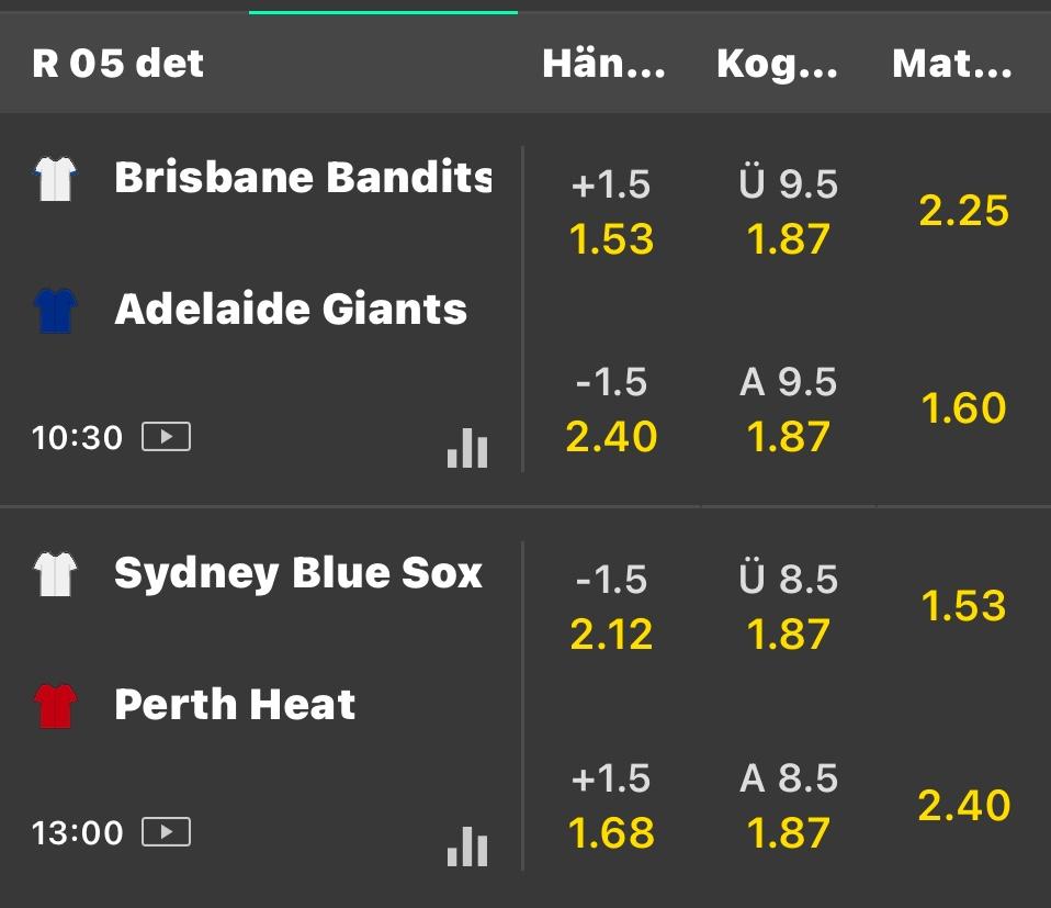 澳洲職棒 >> 2025.12.05 澳棒 白天盤口