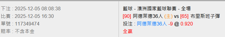 澳洲職籃 >> 12/05【連2天雙盤全過=10個準】【國際連贏4天9過8】上半場推薦!!